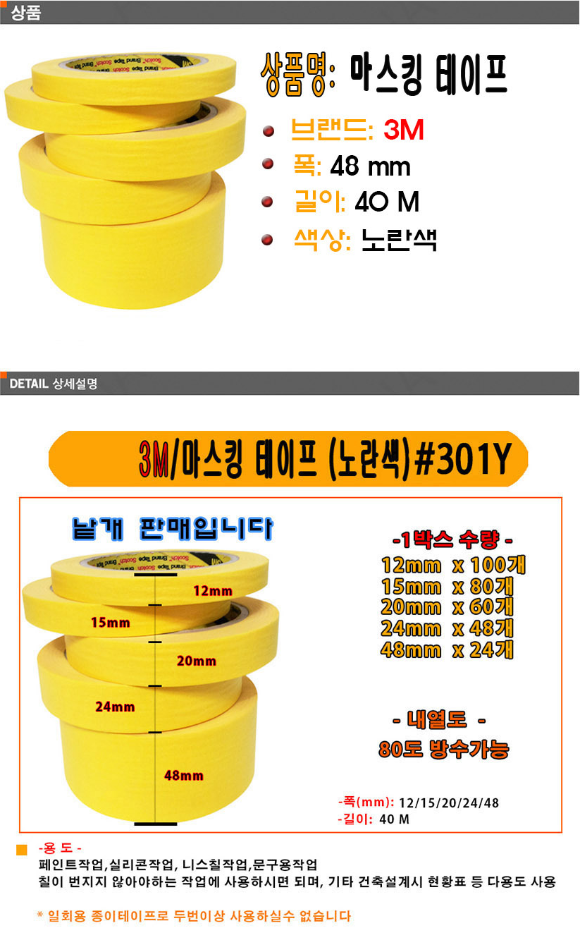 [3M]#30140Y 옐로우 마스킹 테이프 12mm 40M