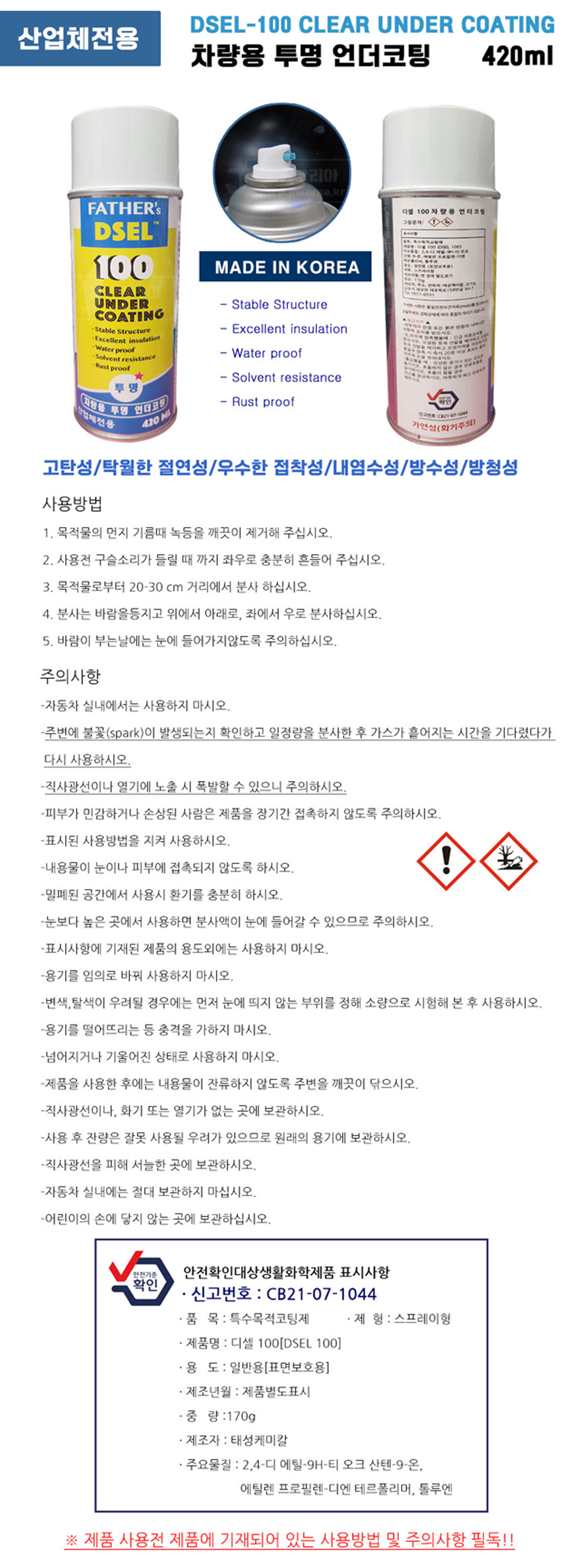 [FATHERS]언더코팅/스프레이타입/DSEL100/투명